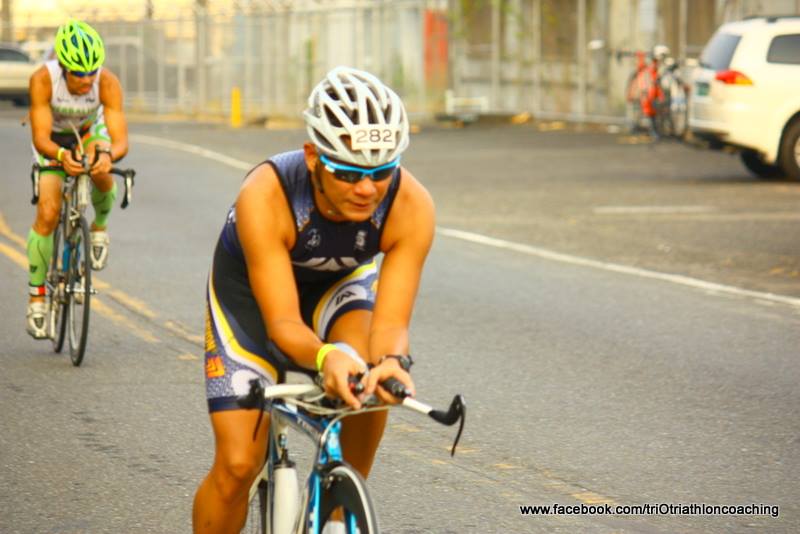 Nearing transition, I had the urge to check my watch to see how much time I needed to do the run if I was going to break my PR of 2:50 on this course. I didn’t. I decided to just go by feel and run the best run that I could that day. I wanted to enjoy the run and didn’t want the pressure of running after the clock. If I had it in me that day, I had it. If I didn’t, then at least I would enjoy the run. So with a fancy dismount and a another fast run to transition (where I overtook a few more guys) I racked my bike, took off my helmet and put on my running shoes.