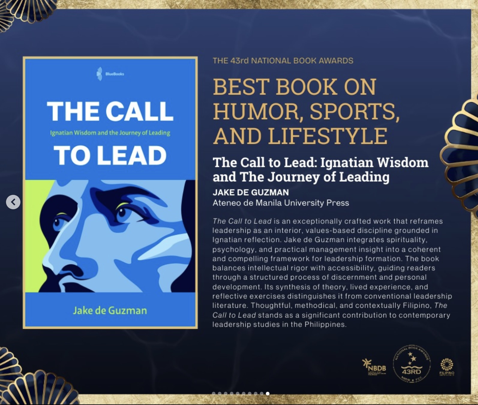 “The Call to Lead is an exceptionally crafted work that reframes leadership as an interior, values-based discipline grounded in Ignatian reflection. Jake de Guzman integrates spirituality, psychology, and practical management insight into a coherent and compelling framework for leadership formation. The book balances intellectual rigour with accessibility, guiding readers through a structured process of discernment and personal development. Its synthesis of theory, lived experience, and reflective exercises distinguishes it from conventional leadership literature. Thoughtful, methodical, and contextually Filipino, The Call to Lead stands as a significant contribution to contemporary leadership studies in the Philippines.” – National Book Development Board and Filipino Critics Circle